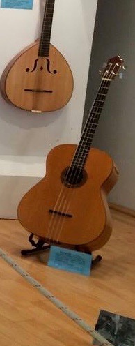 Tiene 4 cuerdas y es una octava mas grave que la guitarra española. Su caja de resonancia es de Ciprés y tapa de resonancia de pino.