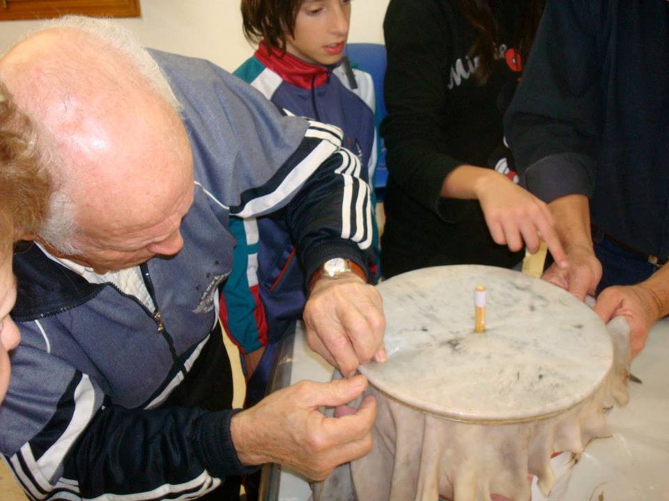 Zambomba de barro con parche de piel de conejo, usada para los cantos de los Mayos en el pueblo de Melegís.